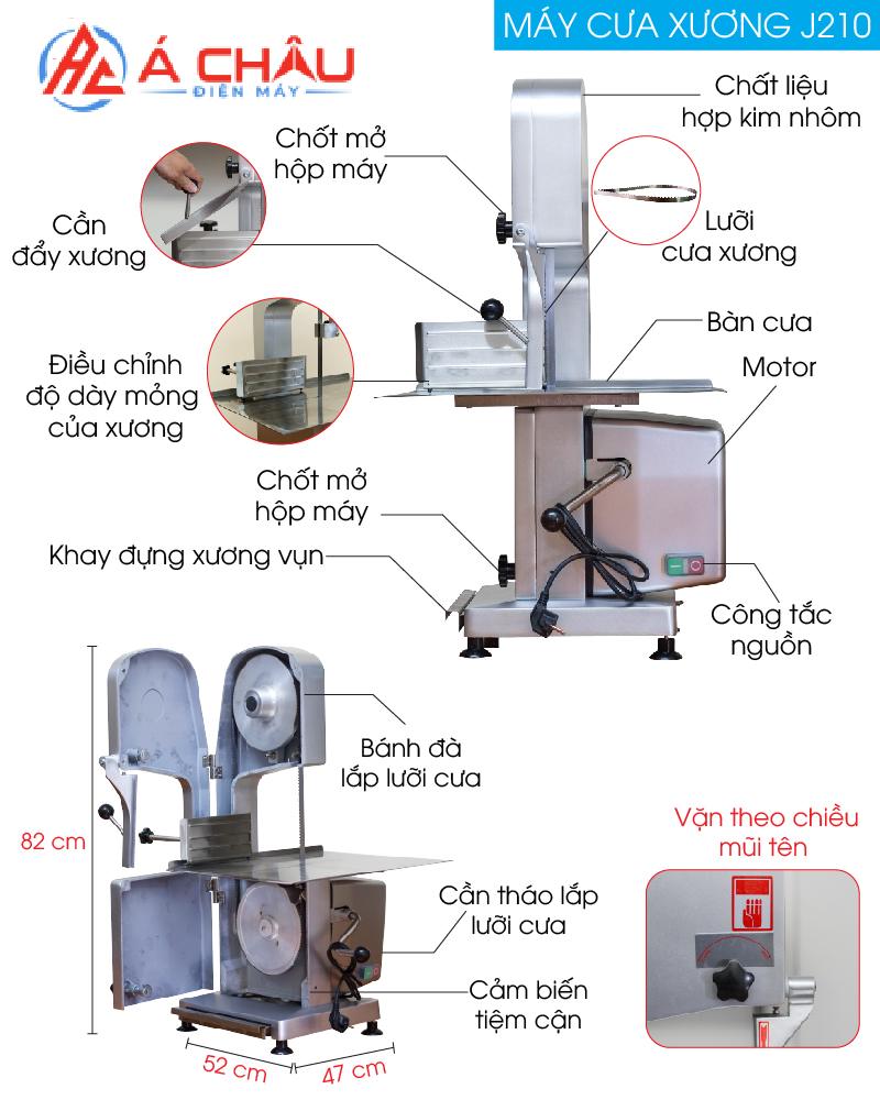 - Cân chỉnh được lưỡi cưa theo mức độ co dãn, ngoài ra khi cần thay thế cũng rất dễ dàng vì đã có hệ thống trục truyền động.