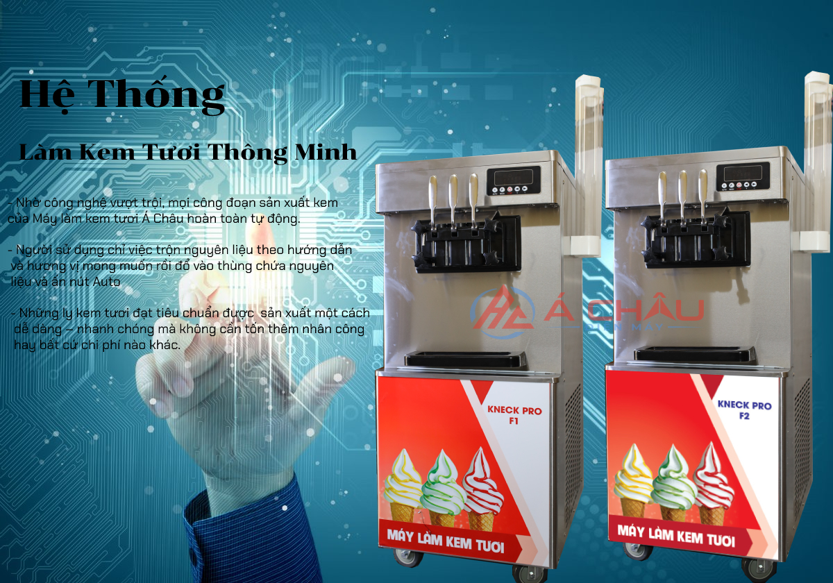 Điện máy Á Châu – Thương hiệu KNECK xin giới thiệu đến Quý khách hàng sản phẩm máy làm kem tươi Kneck- Pro F1 sở hữu công nghệ tiên tiến – lốc làm lạnh cực đỉnh – tiết kiệm điện năng mang lại hiệu quả cao trong quá trình sử dụng. Máy làm kem những năm gần đây được áp dụng rộng rãi vào kinh doanh, mang lại lợi nhuận kinh tế cao.